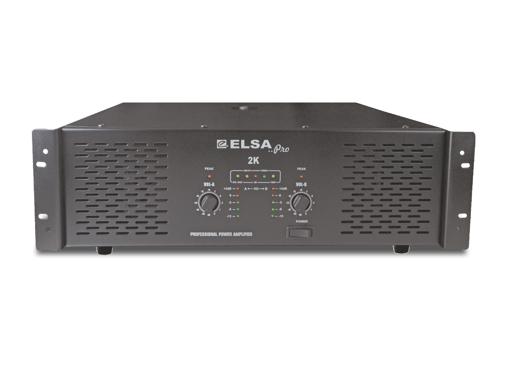 The ELSA Pro 2000K series are the best solution for those space-constricted installed sound reinforcement applications where sonic quality and system performance are required on a long-term full-power operating basis. Implementing ELSA high efficiency Professional Power Amplifier provide an unprecedented acoustic fidelity on the Professional Power Amplifiers range